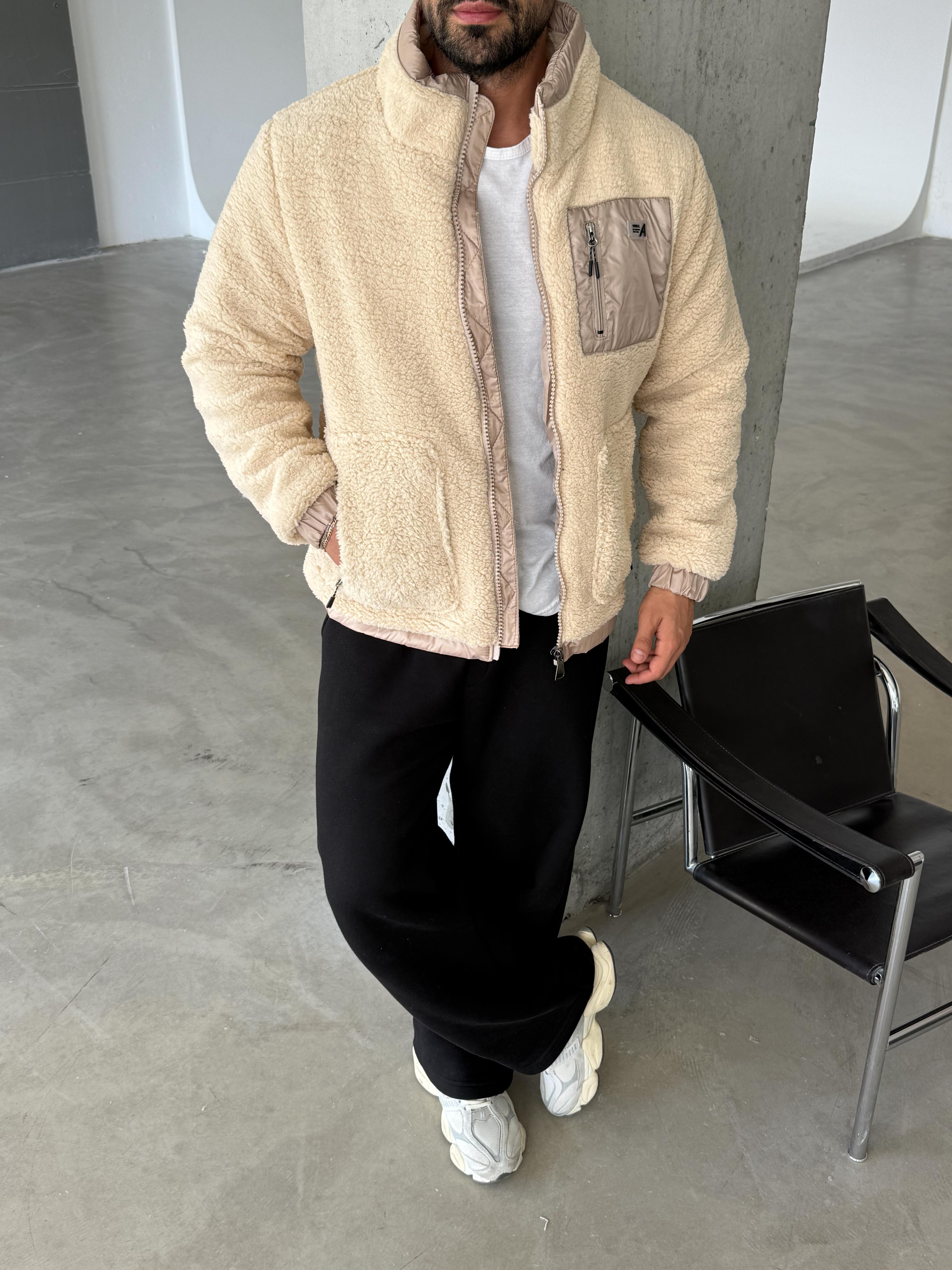 Bej Dik Yaka Astarlı Peluş Mont GVZ (DGMT0000112)