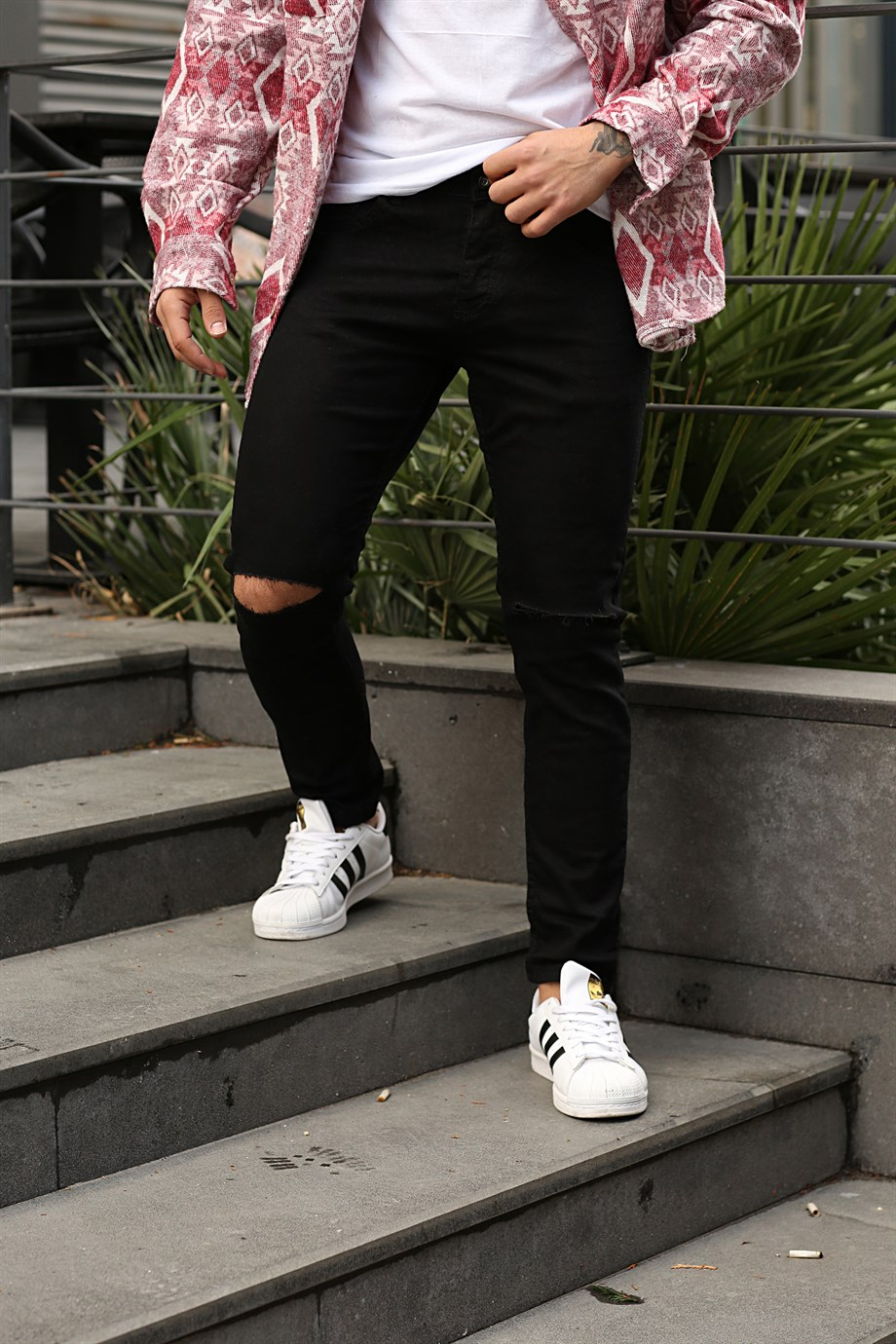 Erkek Dizleri Yırtık Siyah Slim Fit Kot Pantolon 2500 (0001241)