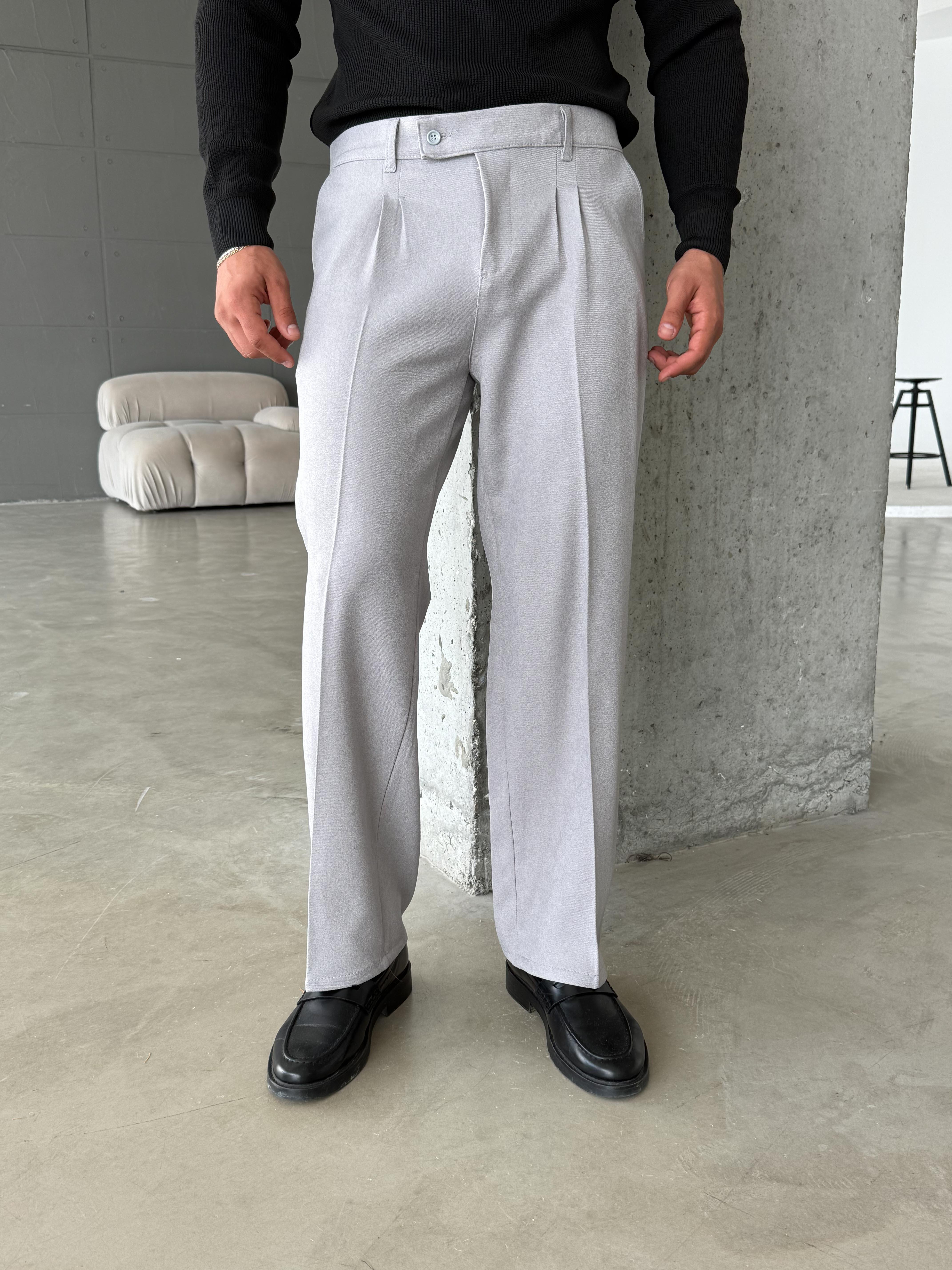 KUMAŞ PANTOLONGri Bol Kesim Pileli Kumaş Pantolon SC