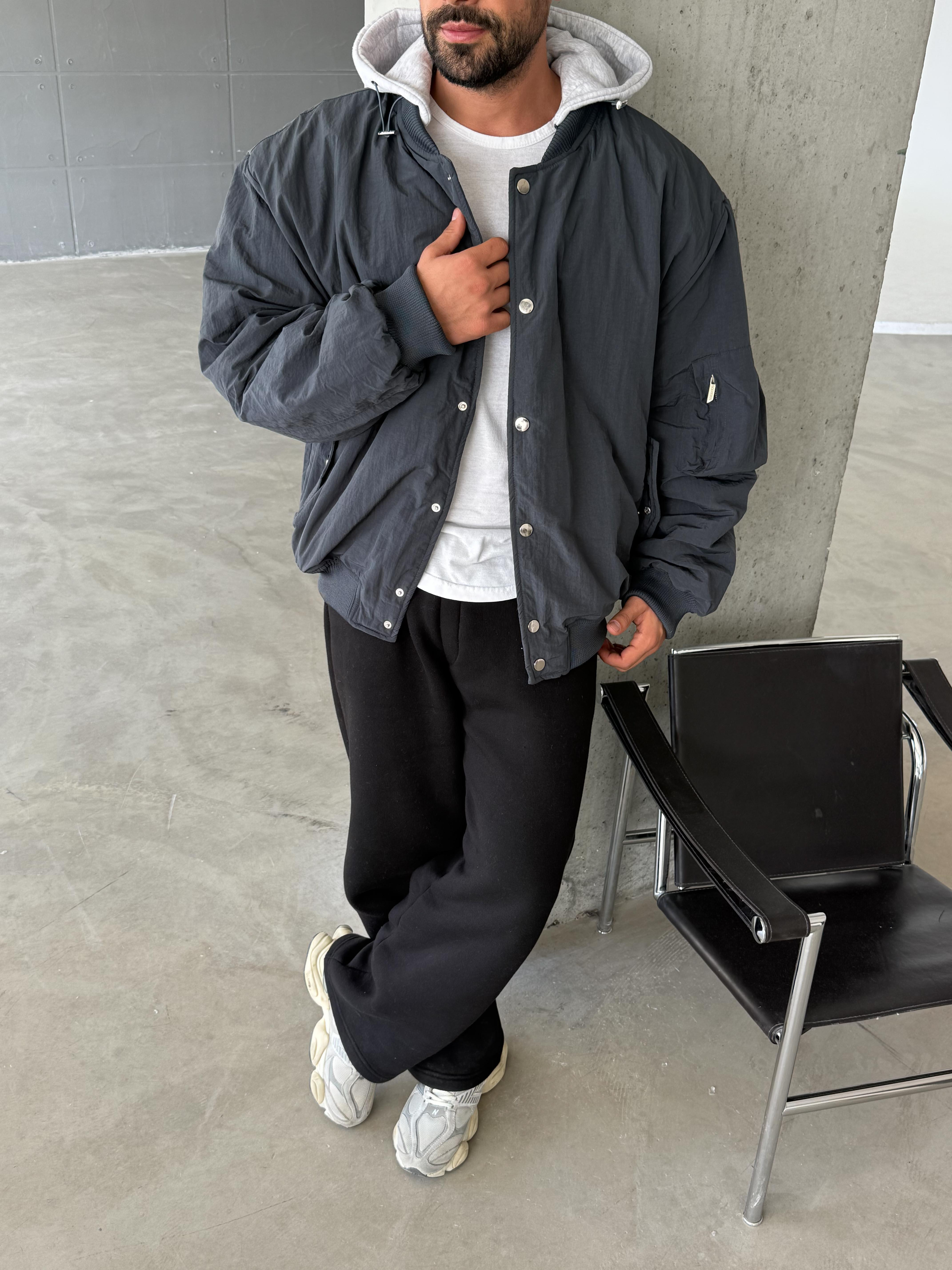 Gri Bomber Seyyar Kapşonlu Mont LNS (DGMT0000115)