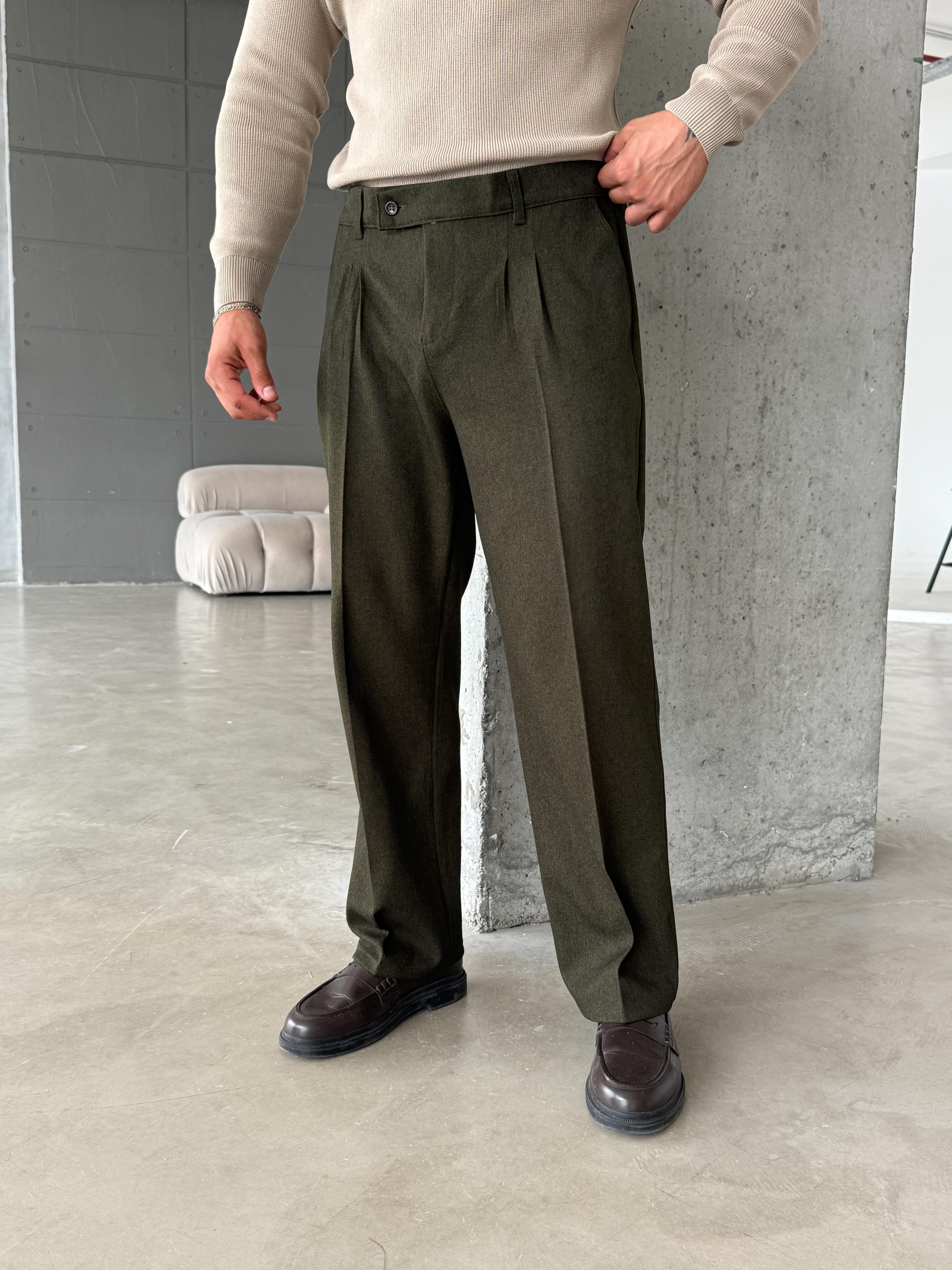KUMAŞ PANTOLONHaki Bol Kesim Pileli Kumaş Pantolon SC