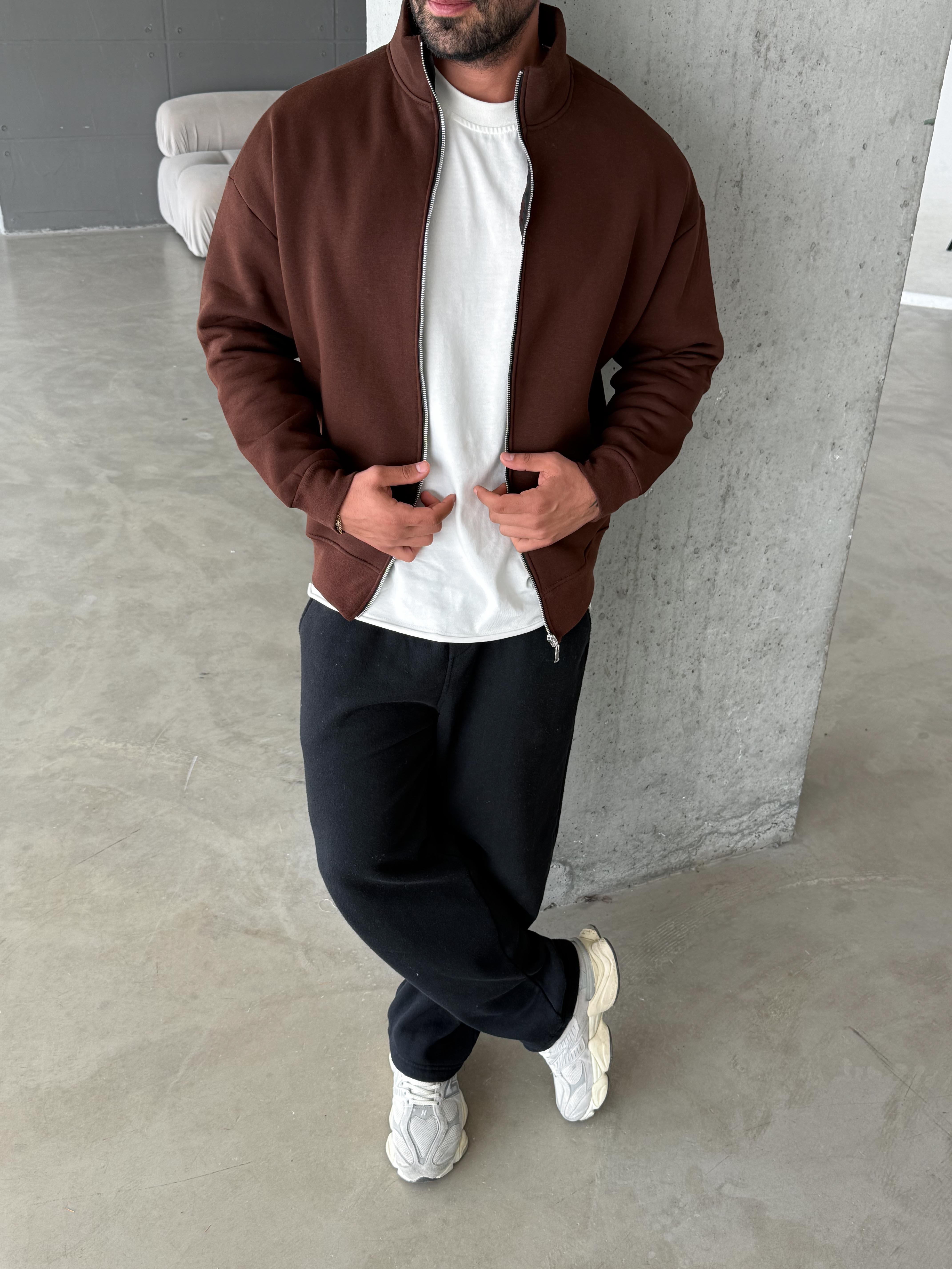 KAZAKKahve 3 İplik Dik Yaka Tam Fermuarlı Polar SC