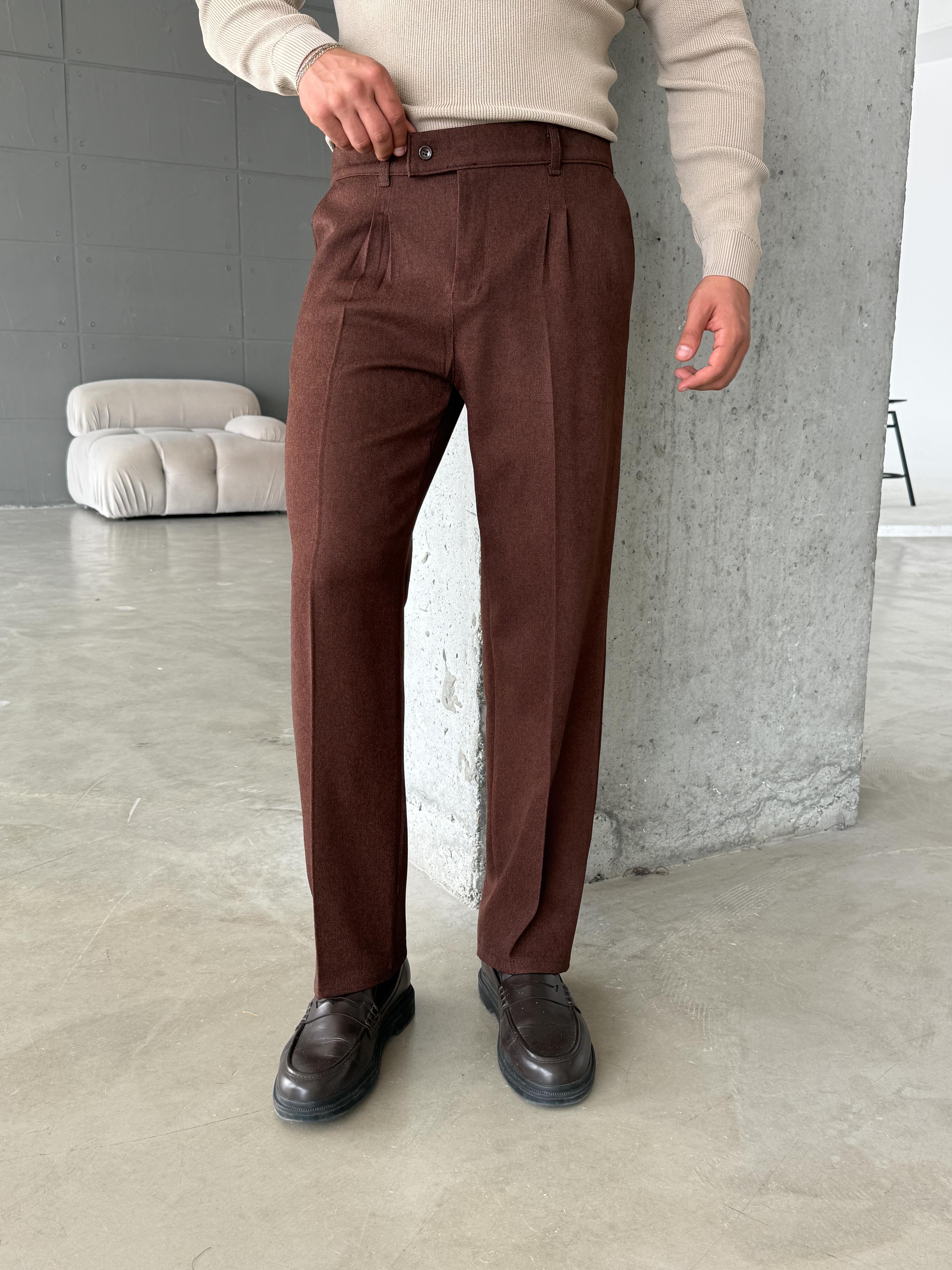Kahve Yün Bol Kesim Pileli Kumaş Pantolon SC (AGKŞP00000005)
