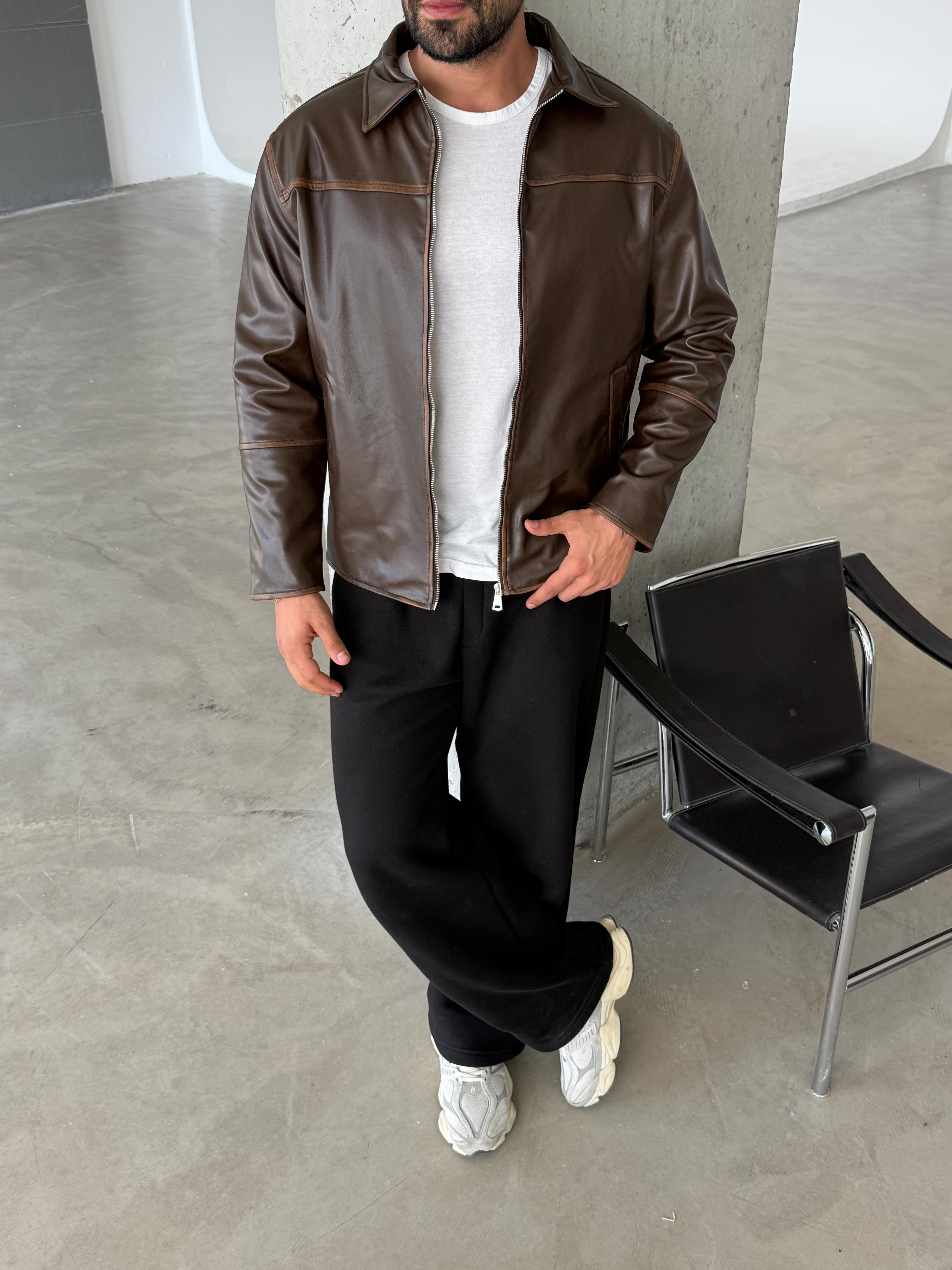 CEKETKahve Kahve Eskitme Deri Ceket GRV