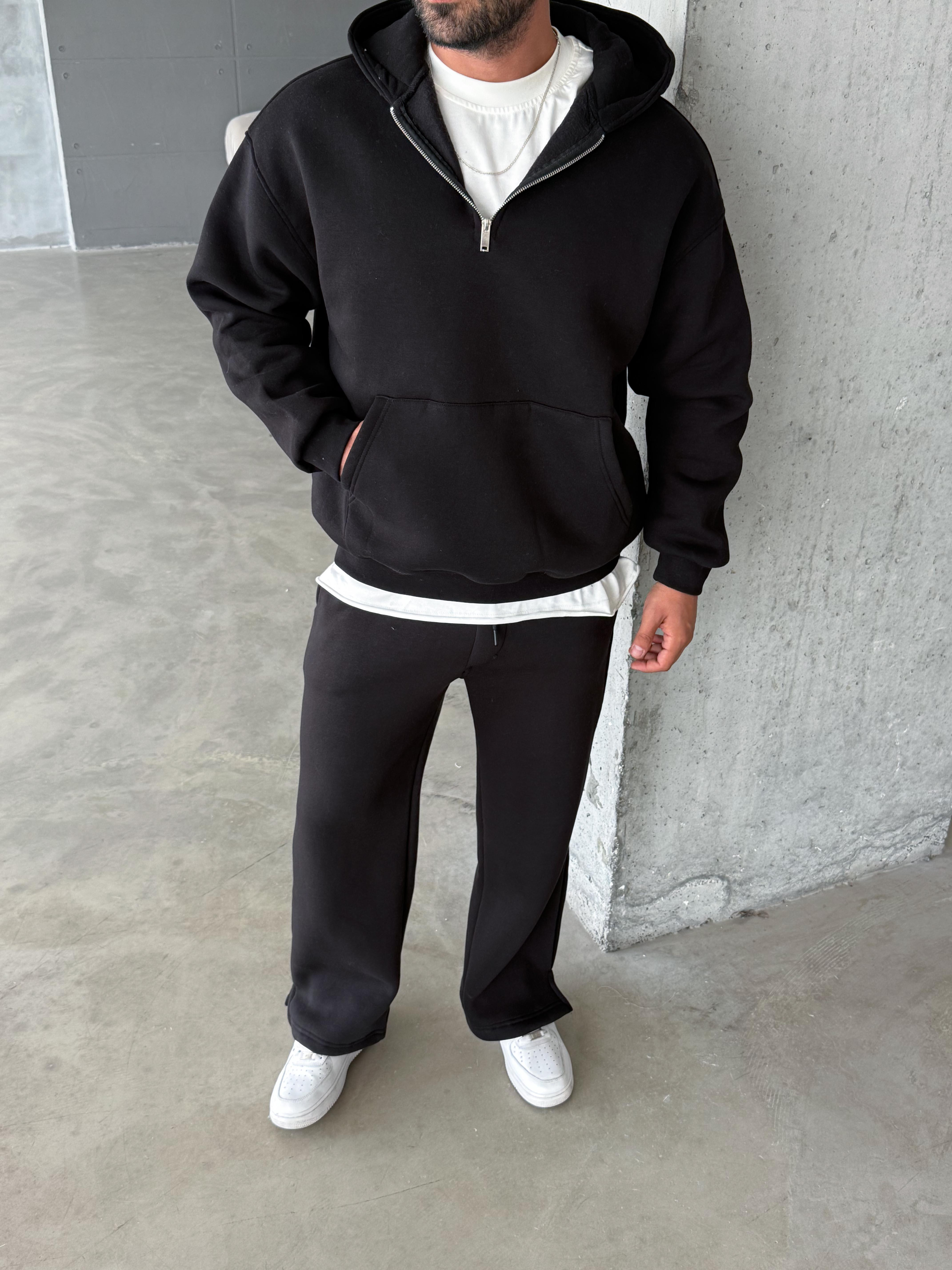SWEATSHİRTSiyah 3 İplik Kapşonlu Yarım Fermuarlı Sweatshirt VS1031