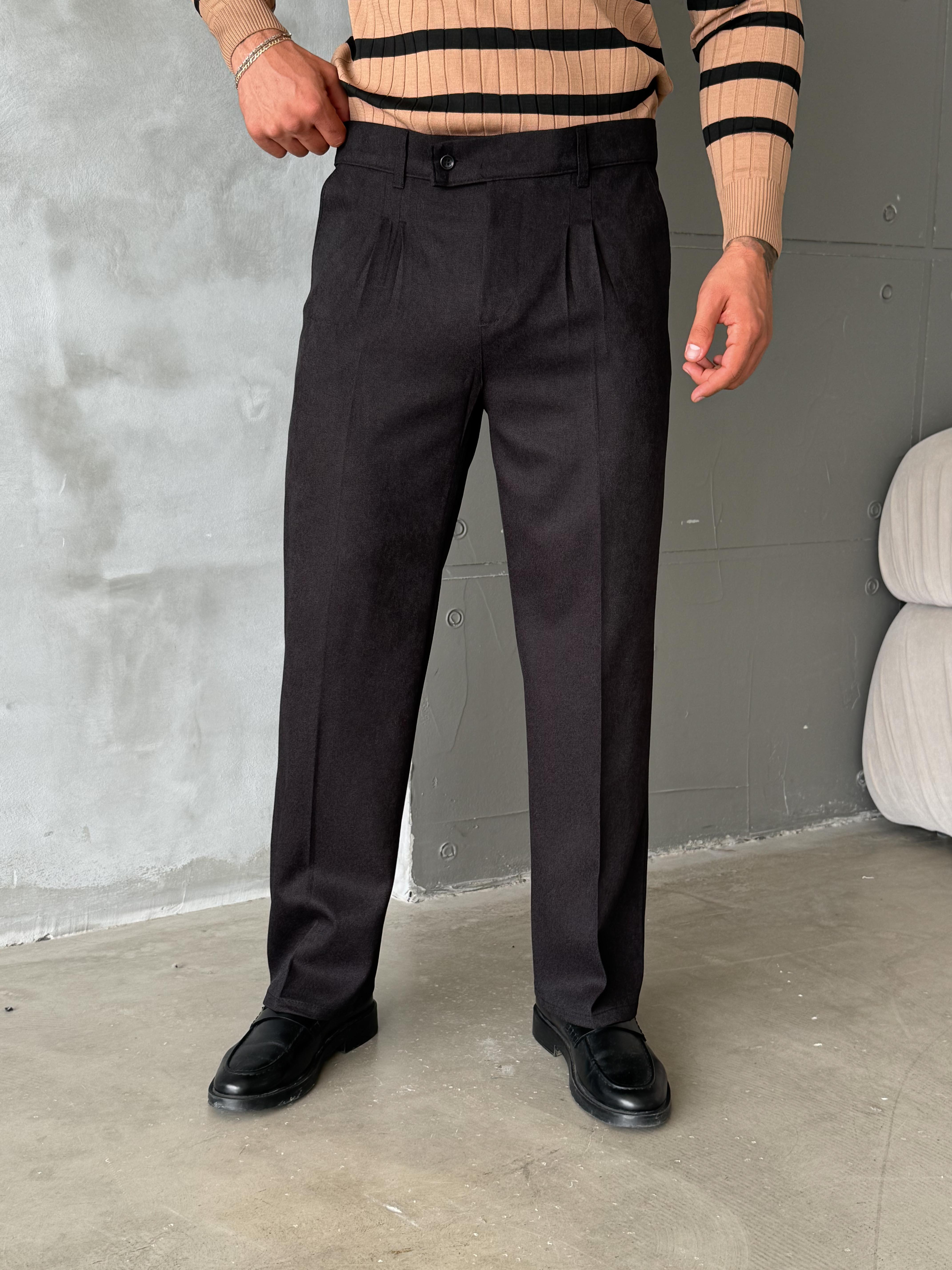 Siyah Yün Bol Kesim Pileli Kumaş Pantolon SC (AGKŞP00000005)